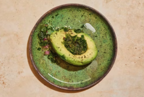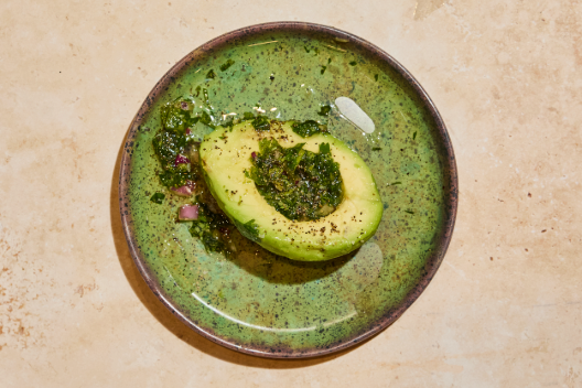 Half an avocado, salt, extra virgin olive oil.