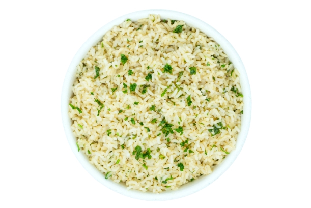 Long Grain Brown Rice, Bay Leaf, Kosher Salt, Black Pepper, EVOO, Lime Juice, Parsley.