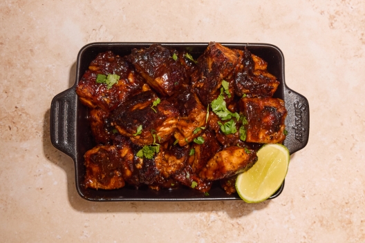 Chicken Thigh, Lime Juice, Cilantro, Honey, Homemade BBQ Sauce.