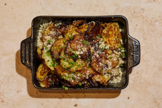 Smashed Baby Yukon Potatoes, Parmesan, Chives, Florida Butter, Lemon *Contains Dairy