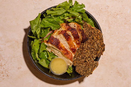 Chicken Waldorf Salad, Farm Greens, Tomatoes, Cucumber, Naked Crisps, Lemon Wedge, White Balsamic Vinaigrette |*Contains Soy | *Contains Sesame | *Contains Walnuts