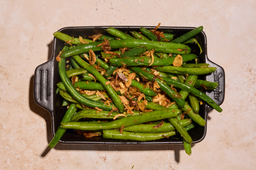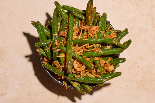 Green Beans, Local Butter, Crispy Shallots, Kosher Salt, Black Pepper | *Contains Dairy | *Contains Wheat