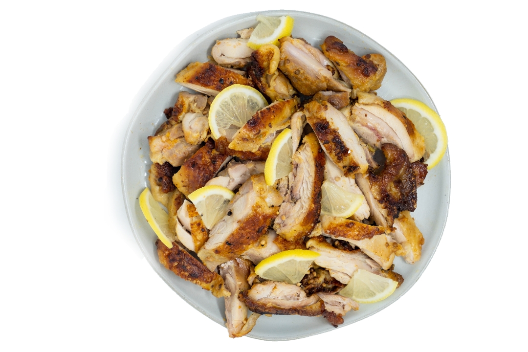 Charred chicken thigh, Florida citrus marinade, garlic, extra virgin olive oil, sea salt & pepper.