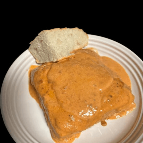 Sautéed veal with bacon, mushroom, vodka cream with a touch of red sauce