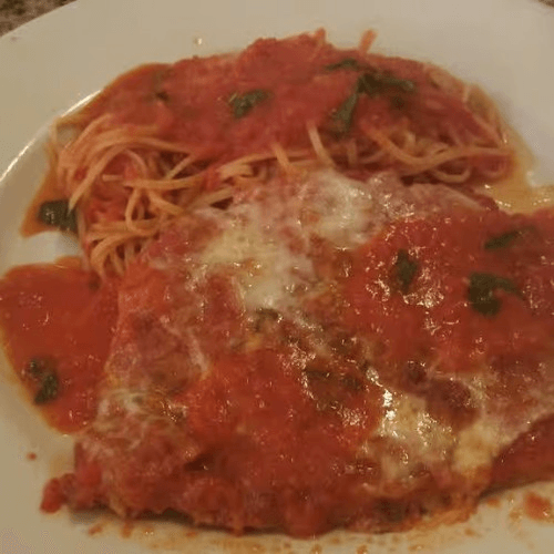Breaded chicken with marinara sauce and mozzarella cheese
